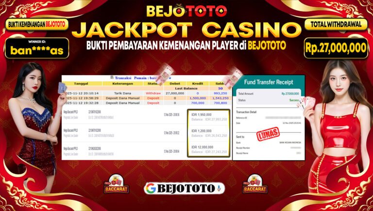 BEJOTOTO – Selamat kepada User id : BOB******S Telah berhasil mendapatkan kemenangan besar pada permainan LIVE CASINO BACCARAT 2 GAMES Dengan kemenangan Sebesar Rp.28,000,000,-. Setelah mengisi formulir withdraw dengan kurung waktu hanya 5 – 10 menit pihak BEJOTOTO sudah melakukan transfer kepada pemilik Userid dan dana sudah dapat di cairkan oleh pemenang. Bukti pembayaran yang kami berikan merupakan bukti pembayaran yang SAH…