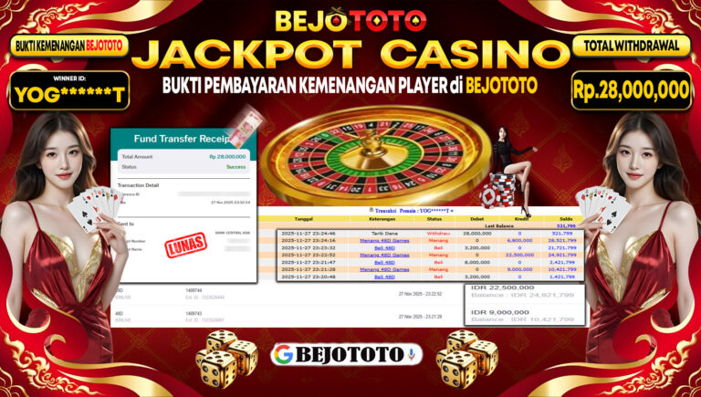 BEJOTOTO – Selamat kepada User id : YOG******T Telah berhasil mendapatkan kemenangan besar pada permainan LIVE CASINO 48D GAMES Dengan kemenangan Sebesar Rp.28,000,000,-. Setelah mengisi formulir withdraw dengan kurung waktu hanya 5 – 10 menit pihak BEJOTOTO sudah melakukan transfer kepada pemilik Userid dan dana sudah dapat di cairkan oleh pemenang. Bukti pembayaran yang kami berikan merupakan bukti pembayaran yang SAH /…