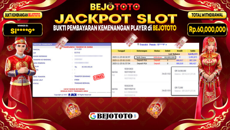 BEJOTOTO – Selamat kepada User id : SI****9* Telah berhasil mendapatkan kemenangan besar pada permainan SLOT DOUBLE FORTUNE Dengan kemenangan Sebesar Rp.60,000,000-. Setelah mengisi formulir withdraw dengan kurung waktu hanya 5 – 10 menit pihak BEJOTOTO sudah melakukan transfer kepada pemilik Userid dan dana sudah dapat di cairkan oleh pemenang. Bukti pembayaran yang kami berikan merupakan bukti pembayaran yang SAH / VALID yang…