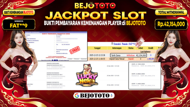 BEJOTOTO JACKPOT SLOT LUCKY NEKO Rp.41,000,000- LUNAS!!