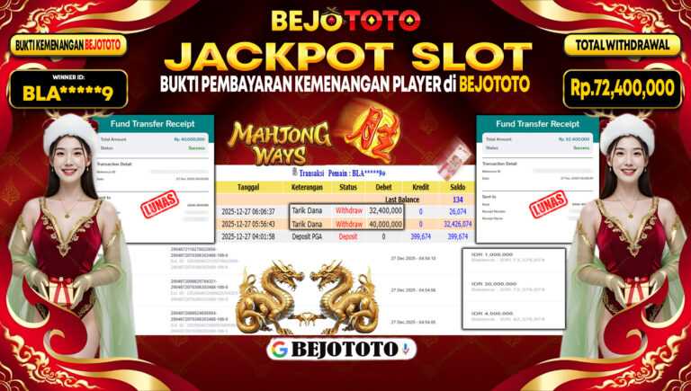 BEJOTOTO – Selamat kepada User id : mai***o* Telah berhasil mendapatkan kemenangan besar pada permainan SLOT MAHJONG WAYS Dengan kemenangan Sebesar Rp.320,000,000-. Setelah mengisi formulir withdraw dengan kurung waktu hanya 5 – 10 menit pihak BEJOTOTO sudah melakukan transfer kepada pemilik Userid dan dana sudah dapat di cairkan oleh pemenang. Bukti pembayaran yang kami berikan merupakan bukti pembayaran yang SAH /…