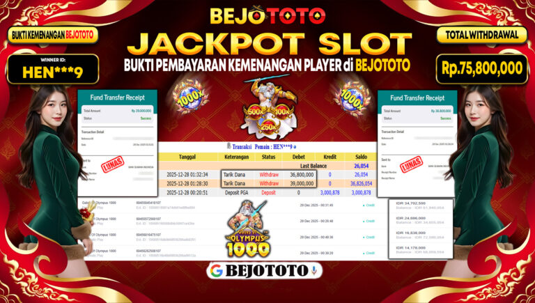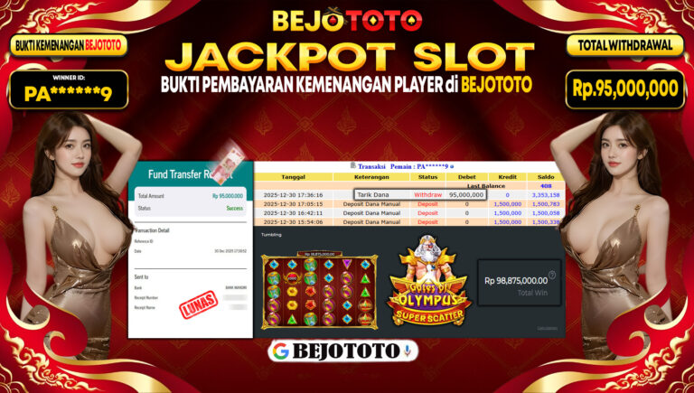 BEJOTOTO – Selamat kepada User id : A*****L Telah berhasil mendapatkan kemenangan besar pada permainan SLOT PRAGMATIC PRAGMATIC WISDOM OF ATHENA 1000 Dengan kemenangan Sebesar Rp.94,000,000,-. Setelah mengisi formulir withdraw dengan kurung waktu hanya 5 – 10 menit pihak BEJOTOTO sudah melakukan transfer kepada pemilik Userid dan dana sudah dapat di cairkan oleh pemenang. Bukti pembayaran yang kami berikan merupakan bukti pembayaran…