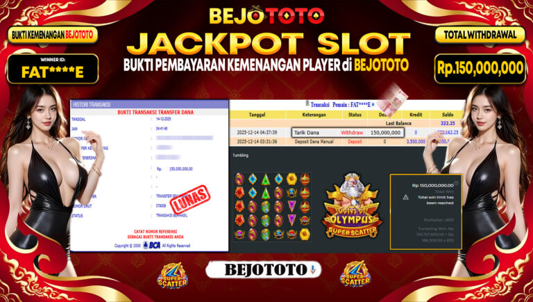 BEJOTOTO JACKPOT SLOT PRAGMATIC GATES OF OLYMPUS SUPER SCATTER Rp.150,000,000,- LUNAS!!
