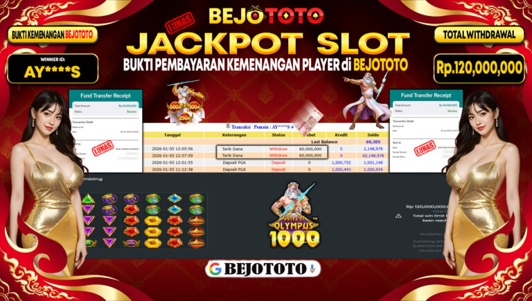 BEJOTOTO – Selamat kepada User id : AY****S Telah berhasil mendapatkan kemenangan besar pada permainan SLOT PRAGMATIC GATES OF OLYMPUS 1000 Dengan kemenangan Sebesar Rp.120,000,000,-. Setelah mengisi formulir withdraw dengan kurung waktu hanya 5 – 10 menit pihak BEJOTOTO sudah melakukan transfer kepada pemilik Userid dan dana sudah dapat di cairkan oleh pemenang. Bukti pembayaran yang kami berikan merupakan bukti…