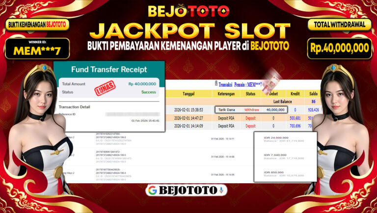 BEJOTOTO – Selamat kepada User id : ZHA***I* Telah berhasil mendapatkan kemenangan besar pada permainan SLOT PRAGMATIC SUPER MANIA SLOT MANIA Dengan kemenangan Sebesar Rp.50,000,000,-. Setelah mengisi formulir withdraw dengan kurung waktu hanya 5 – 10 menit pihak BEJOTOTO sudah melakukan transfer kepada pemilik Userid dan dana sudah dapat di cairkan oleh pemenang. Bukti pembayaran yang kami berikan merupakan bukti pembayaran…
