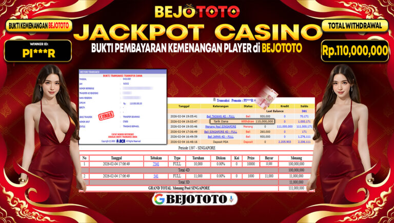 BEJOTOTO – Selamat kepada User id : PI***R Telah berhasil mendapatkan kemenangan besar pada permainan TOGEL SINGAPORE POOLS Dengan kemenangan Sebesar Rp.110,000,000,-. Setelah mengisi formulir withdraw dengan kurung waktu hanya 5 – 10 menit pihak BEJOTOTO sudah melakukan transfer kepada pemilik Userid dan dana sudah dapat di cairkan oleh pemenang. Bukti pembayaran yang kami berikan merupakan bukti pembayaran yang SAH / VALID yang…