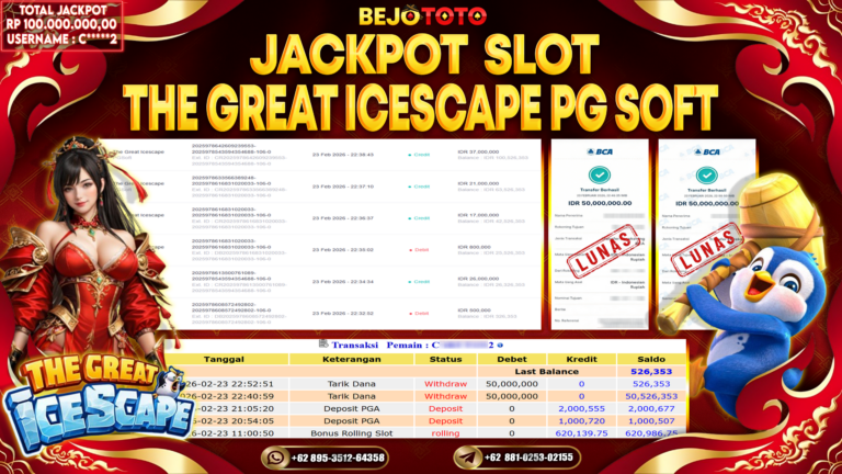 BEJOTOTO – Selamat kepada User id : C*****2 Telah berhasil mendapatkan kemenangan besar pada permainan SLOT PG SOFT THE GREAT ICE SCAPE Dengan kemenangan Sebesar Rp.100,000,000-. Setelah mengisi formulir withdraw dengan kurung waktu hanya 5 – 10 menit pihak BEJOTOTO sudah melakukan transfer kepada pemilik Userid dan dana sudah dapat di cairkan oleh pemenang. Bukti pembayaran yang kami berikan merupakan…