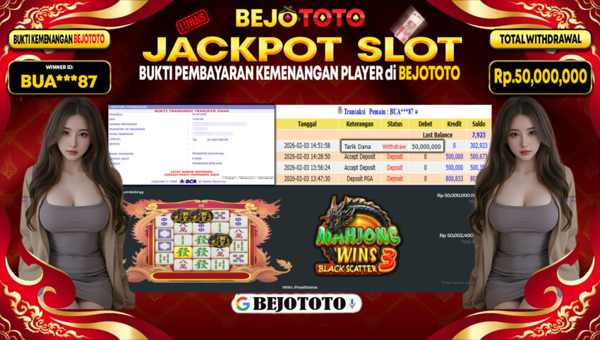 BEJOTOTO – Selamat kepada User id : BUA***87 Telah berhasil mendapatkan kemenangan besar pada permainan SLOT PRAGMATIC MAHJONG WINS 3 – BLACK SCATTER Dengan kemenangan Sebesar Rp.50,000,000,-. Setelah mengisi formulir withdraw dengan kurung waktu hanya 5 – 10 menit pihak BEJOTOTO sudah melakukan transfer kepada pemilik Userid dan dana sudah dapat di cairkan oleh pemenang. Bukti pembayaran yang kami berikan merupakan bukti pembayaran yang SAH / VALID yang langung di dapatkan melaui tanda transfer transaksi dari Bank yang di tuju.