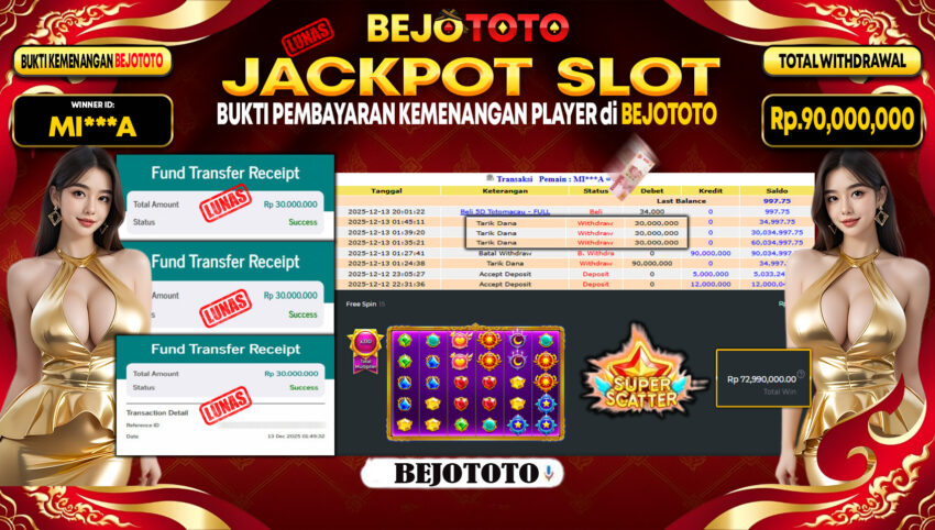 BEJOTOTO – Selamat kepada User id : MI***A Telah berhasil mendapatkan kemenangan besar pada permainan SLOT PRAGMATIC PRAGMATIC STARLIGHT PRINCESS SUPER SCATTER Dengan kemenangan Sebesar Rp.90,000,000,-. Setelah mengisi formulir withdraw dengan kurung waktu hanya 5 – 10 menit pihak BEJOTOTO sudah melakukan transfer kepada pemilik Userid dan dana sudah dapat di cairkan oleh pemenang. Bukti pembayaran yang kami berikan merupakan bukti pembayaran yang SAH / VALID yang langung di dapatkan melaui tanda transfer transaksi dari Bank yang di tuju.