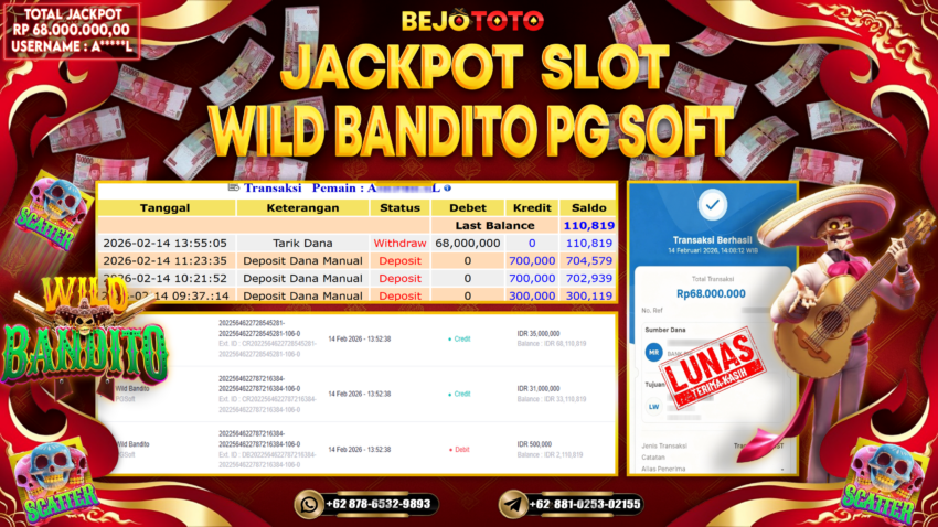 BEJOTOTO JACKPOT SLOT WILD BANDITO Rp.68,000,000- LUNAS!!